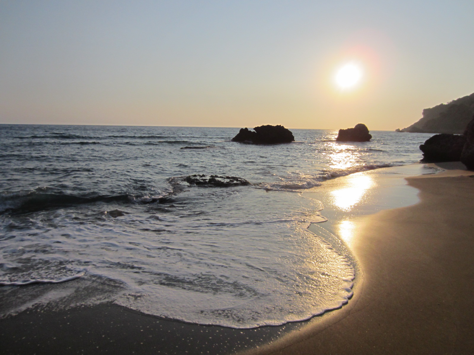 The beach popular since the hippy years, kept most of its authenticity and attracts both nudists as well as “textile” (swimming suit) sun bathers. Besides its laid back atmosphere one is spared of seeing countless hotels, shops, ambulant sellers. Here you can enjoy the beach, the sun and the unspoiled mountain. I can’t say that it is THE most beautiful beach in Europe, but I can ensure you that the sun sets are spectacular and it feels that the air and sea are dipped into gold.